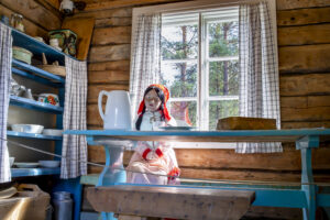 Jos vierailet ulkomuseossa talvella, huomioithan olosuhteet myös pukeutumisessa. Vinkkejä talvipukeutumiseen löydät VisitFinlandin verkkosivuilta.
