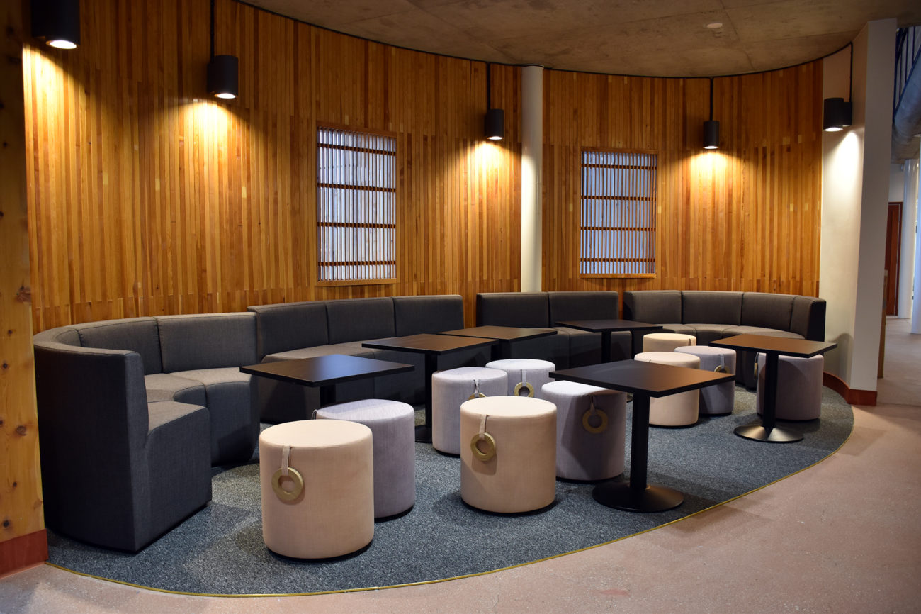 ”Rakennuksessa sisäänkäynnit ja katsontalinjat on säilytetty avonaisina ja päänäkymät korostuvat rakennuksessa. Rakennuksessa on säilytetty ja palautettu alkuperäisiä pintoja, kuten betonilattiat. Myös kohteessa käytetty muotokieli on säilytetty, jossa pyöristetyt nurkkamuodot ovat olennaisia. Kalusteista mm. auditorion penkit kunnostettiin uudelleen käyttöön”, kertoo Miikka Teppo.