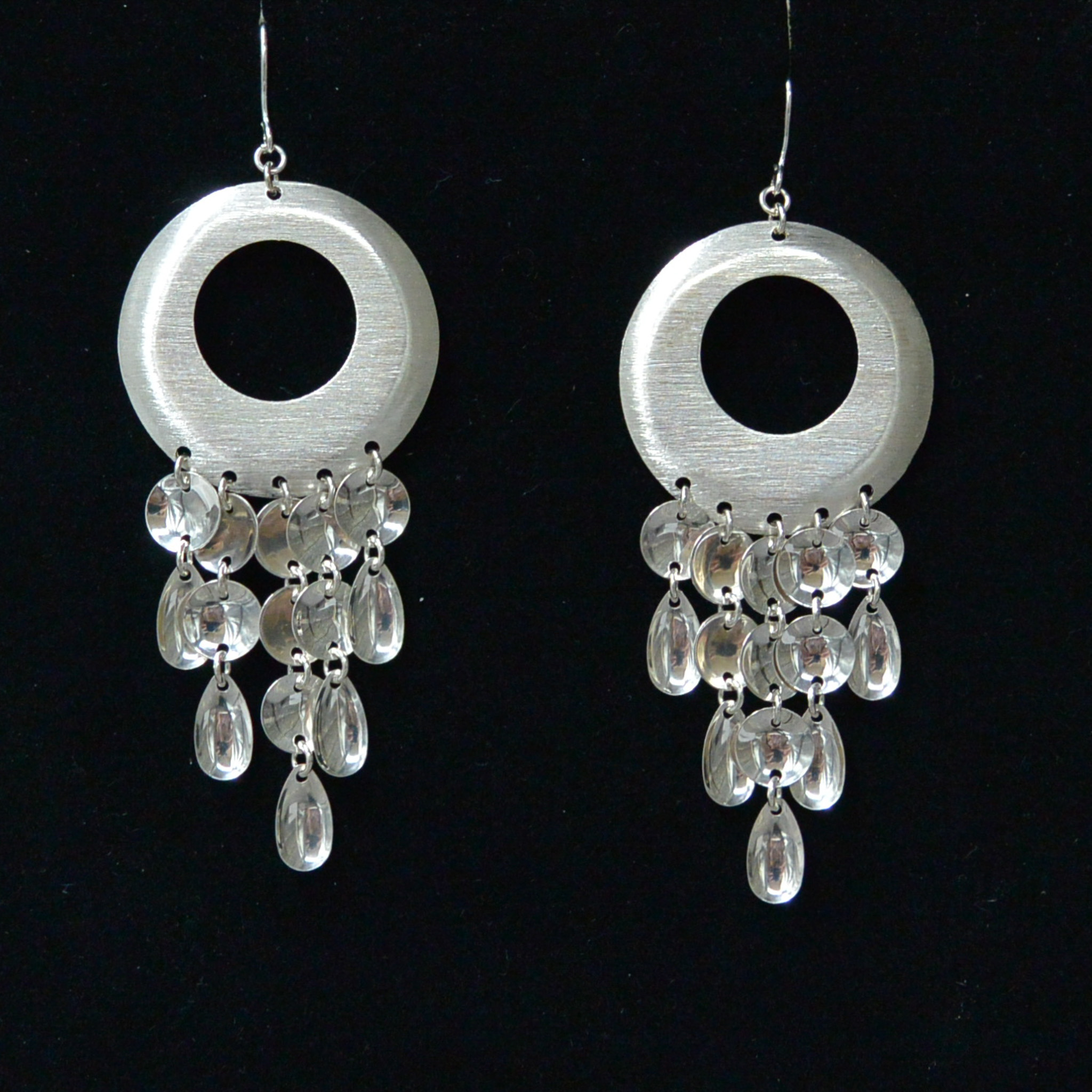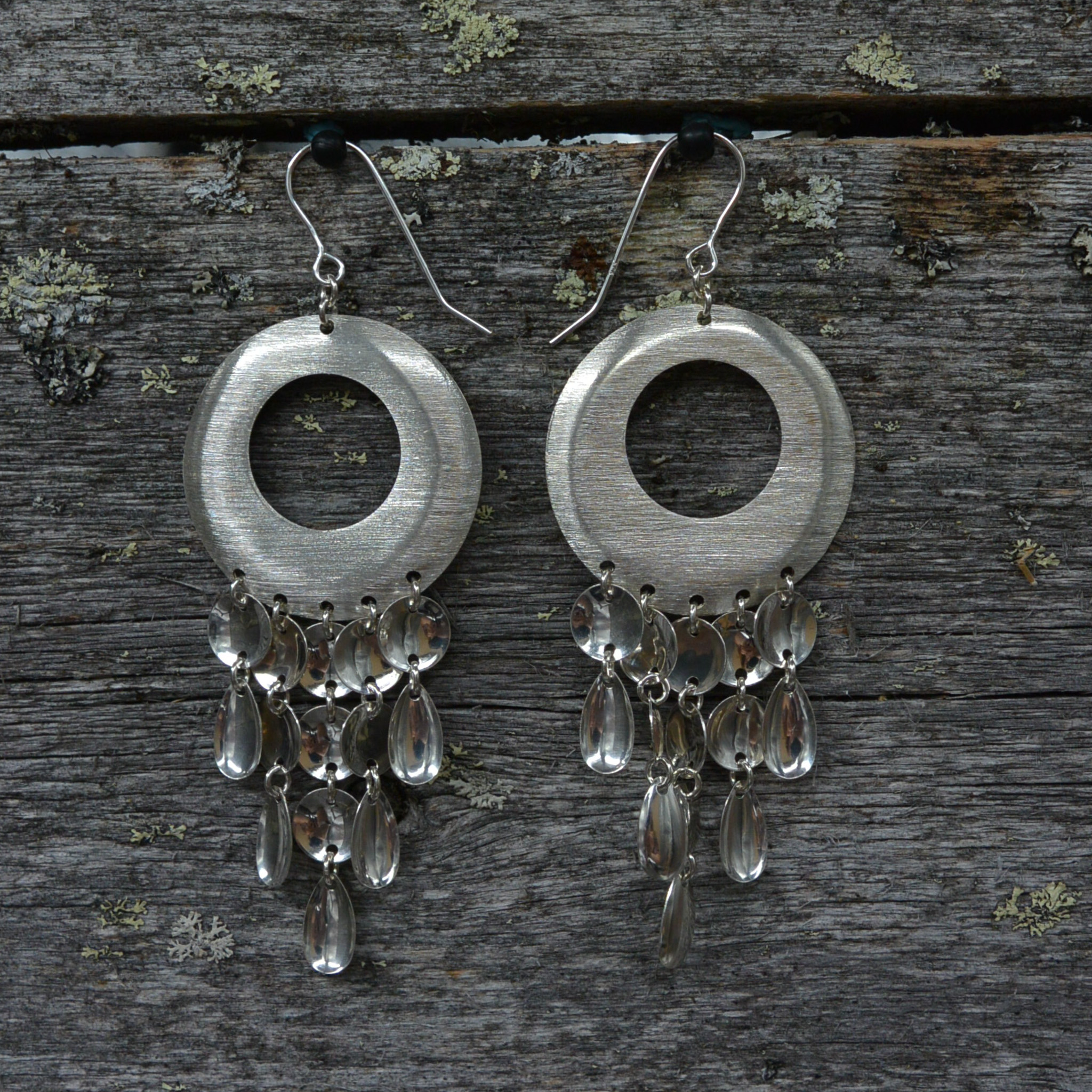 Katja Maggan suunnittelemat näyttävät korvakorut tulevat varmasti huomatuksi. Korun suuri rengas on hopeaa, jonka pinta on harjattu. Harjattu pinta luo tyylikkään ulkoasun koruille. Koruissa on koukkukiinnitys.