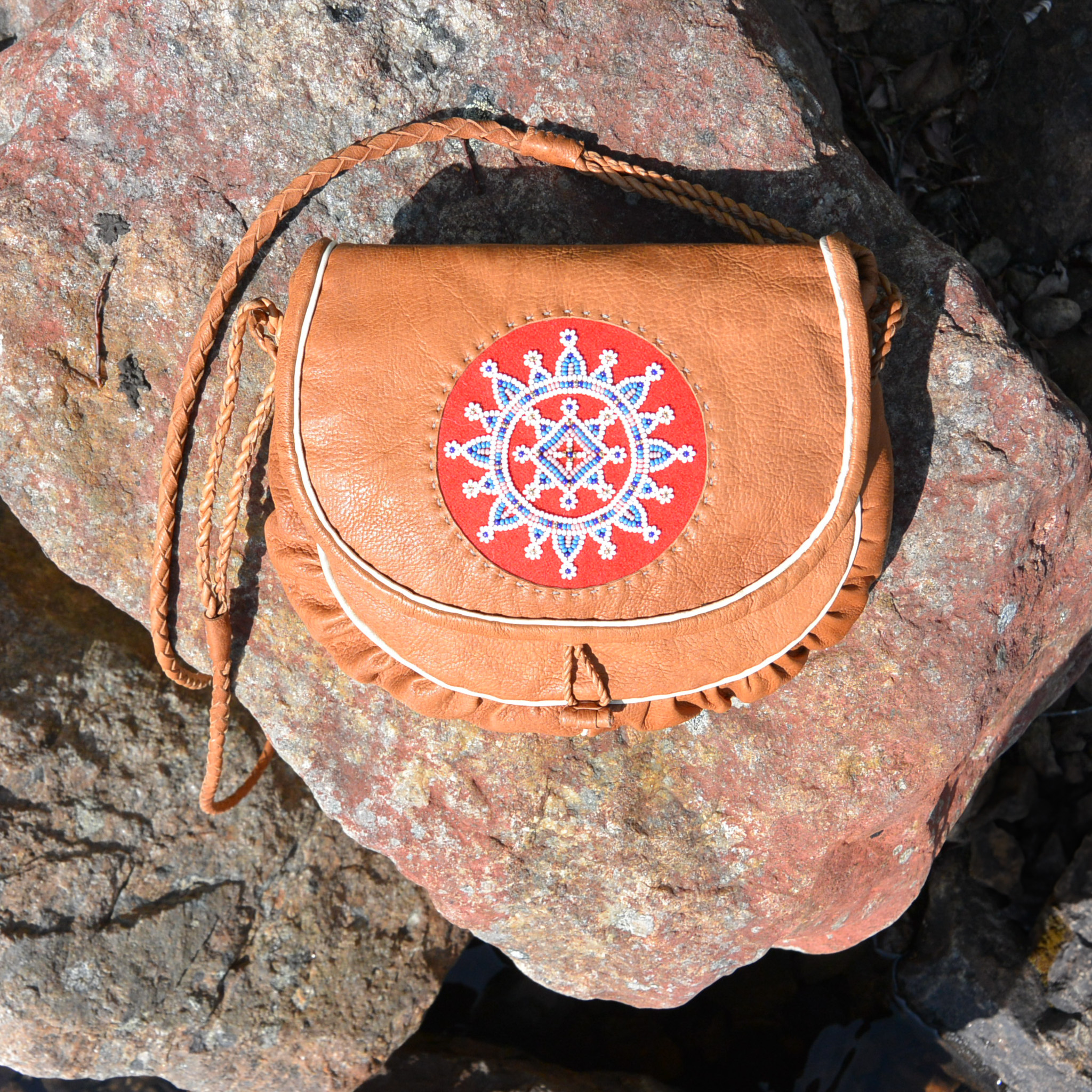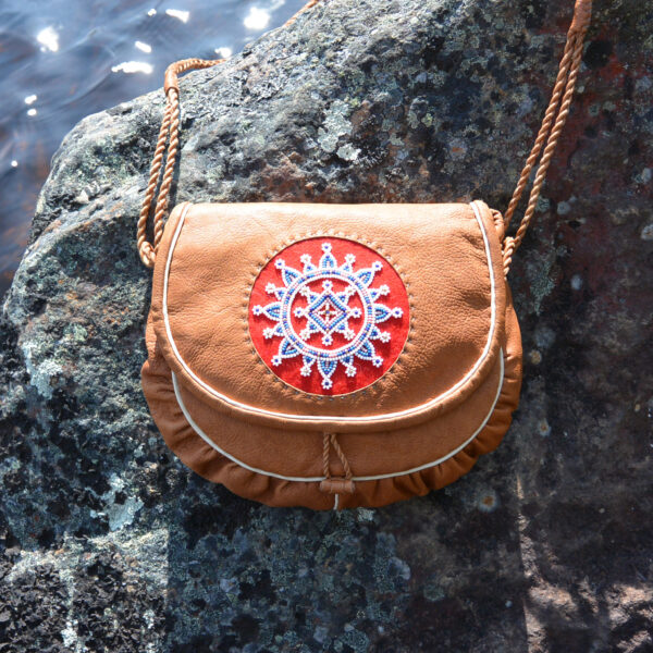 Käsilaukku on valmistettu perinteisistä materiaaleista perinteisin ja luonnonmukaisin menetelmin.