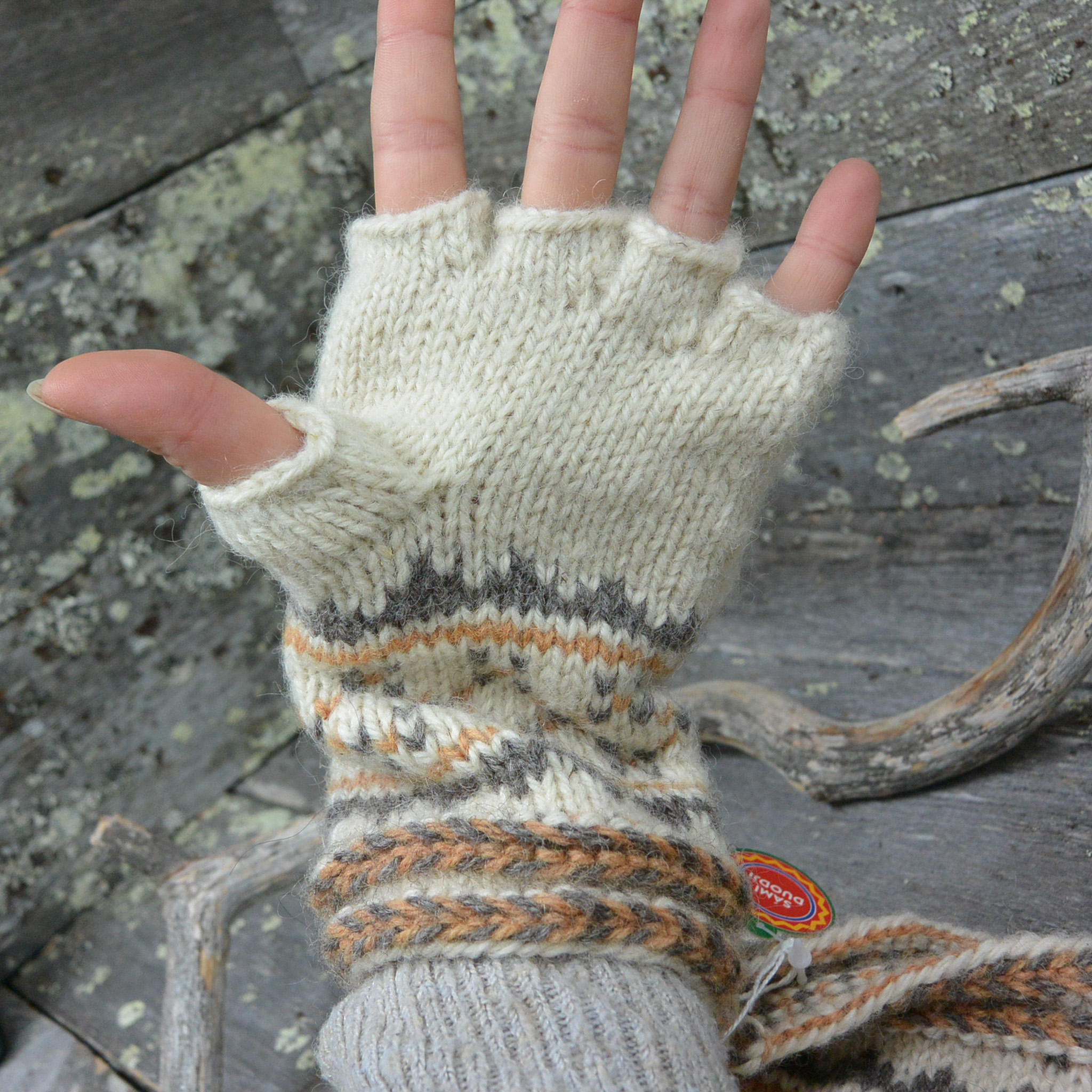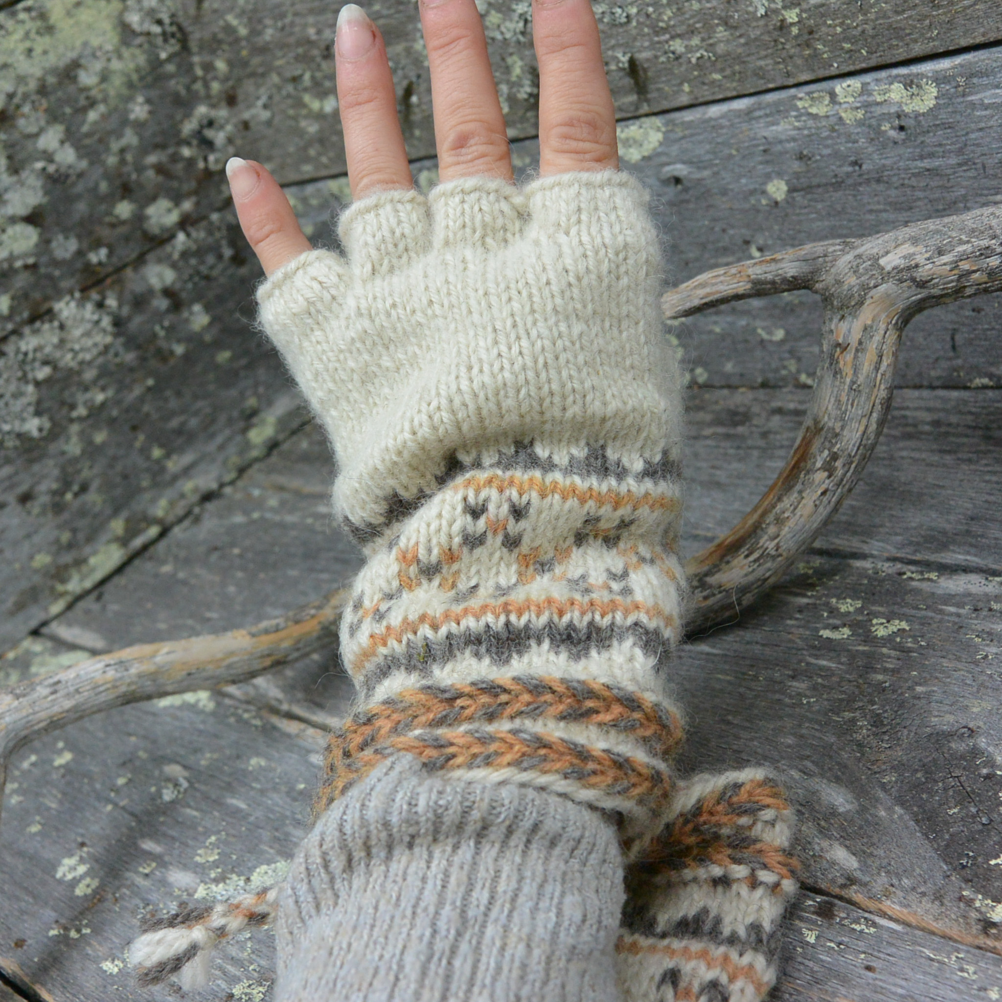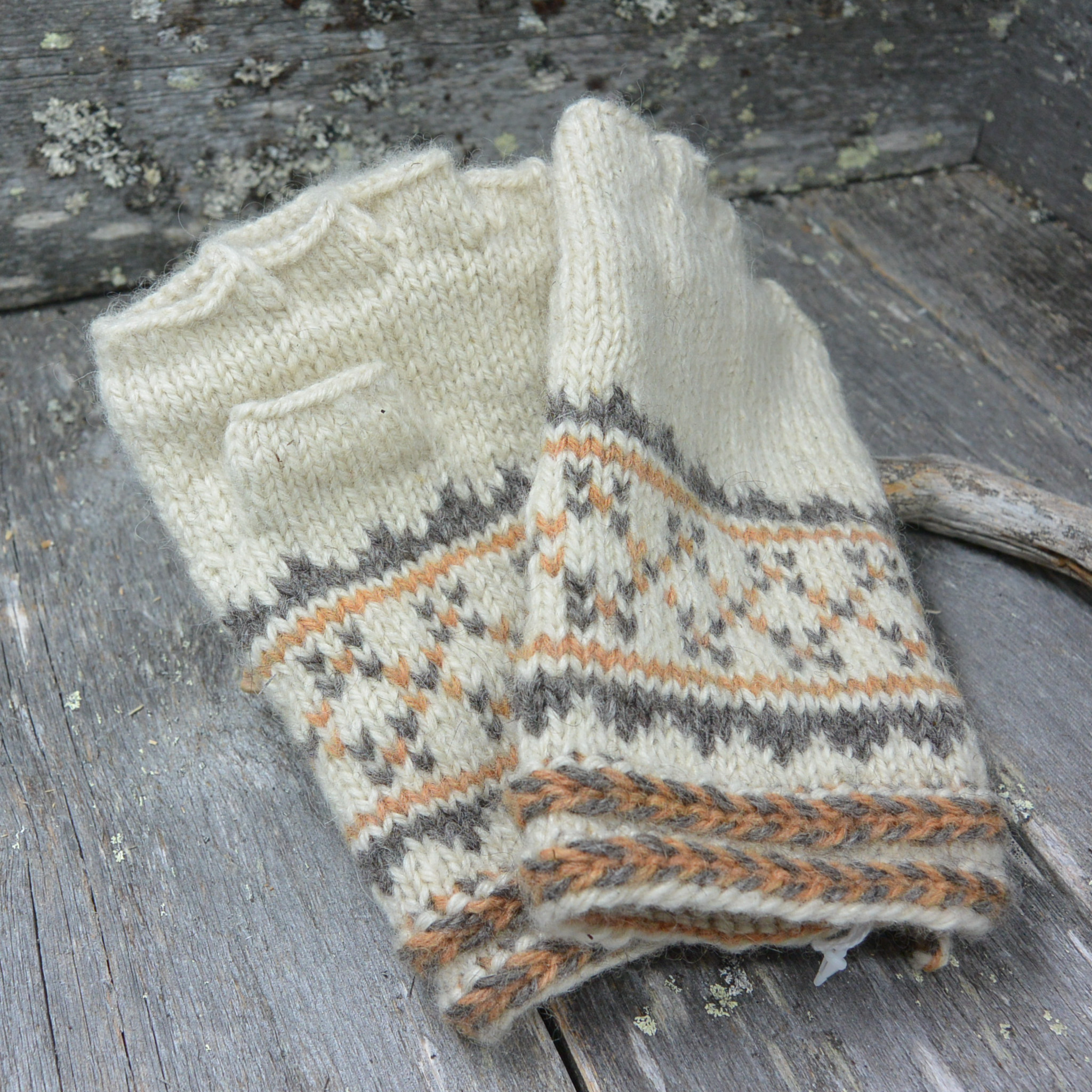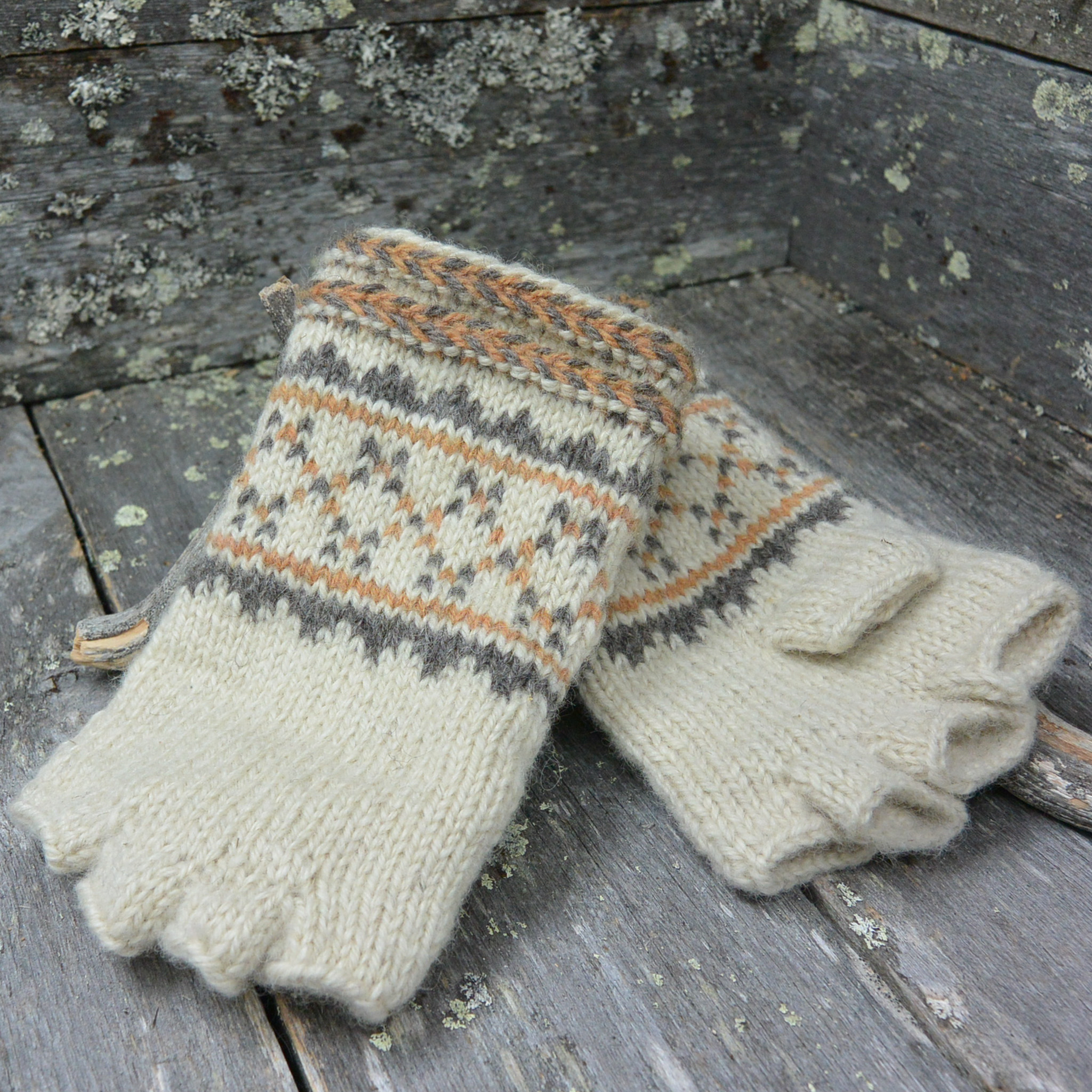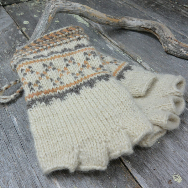 Kolttakäsityömestari Matleena Fofonoff kutomat kynsikkäät kasvivärjätystä 100% villalangasta.