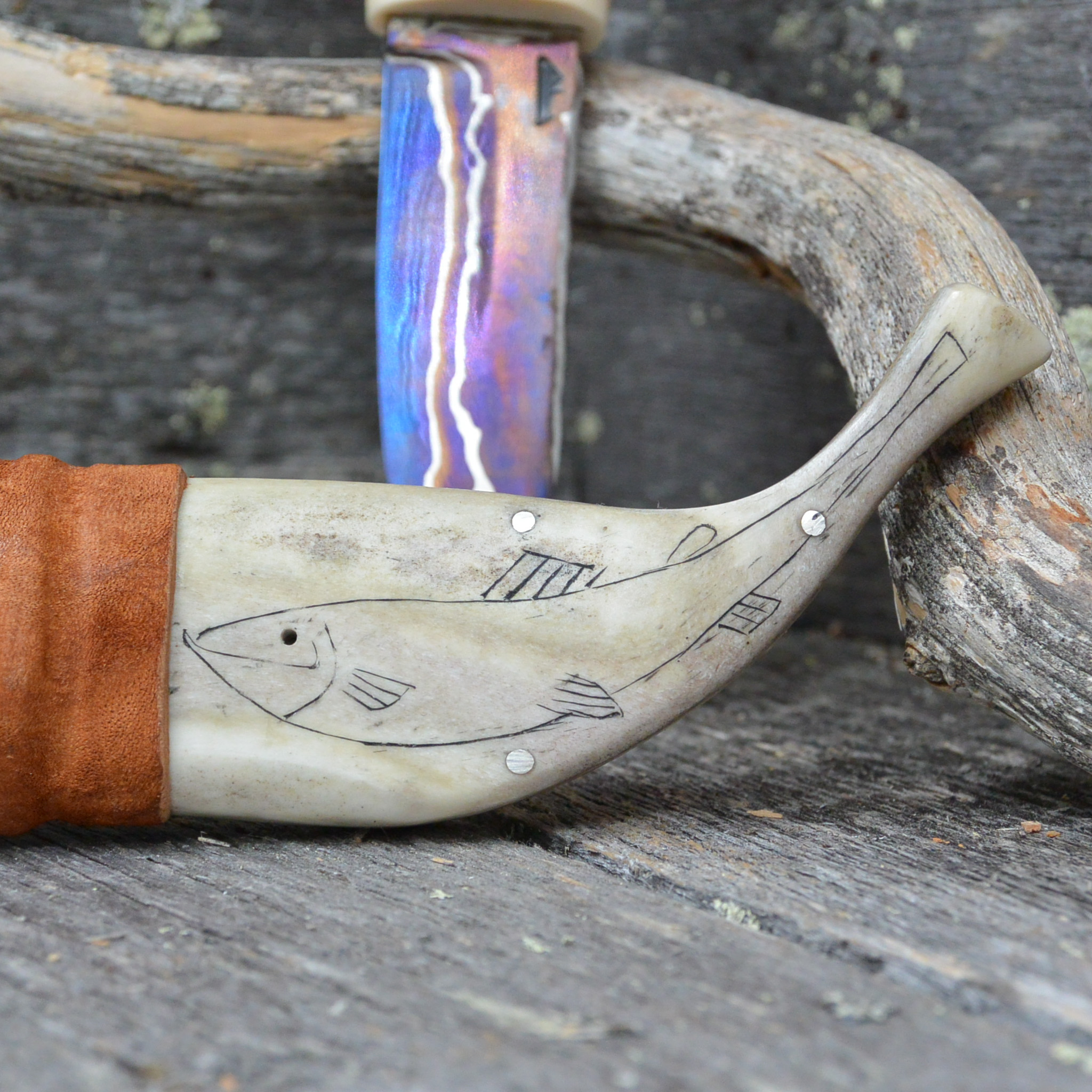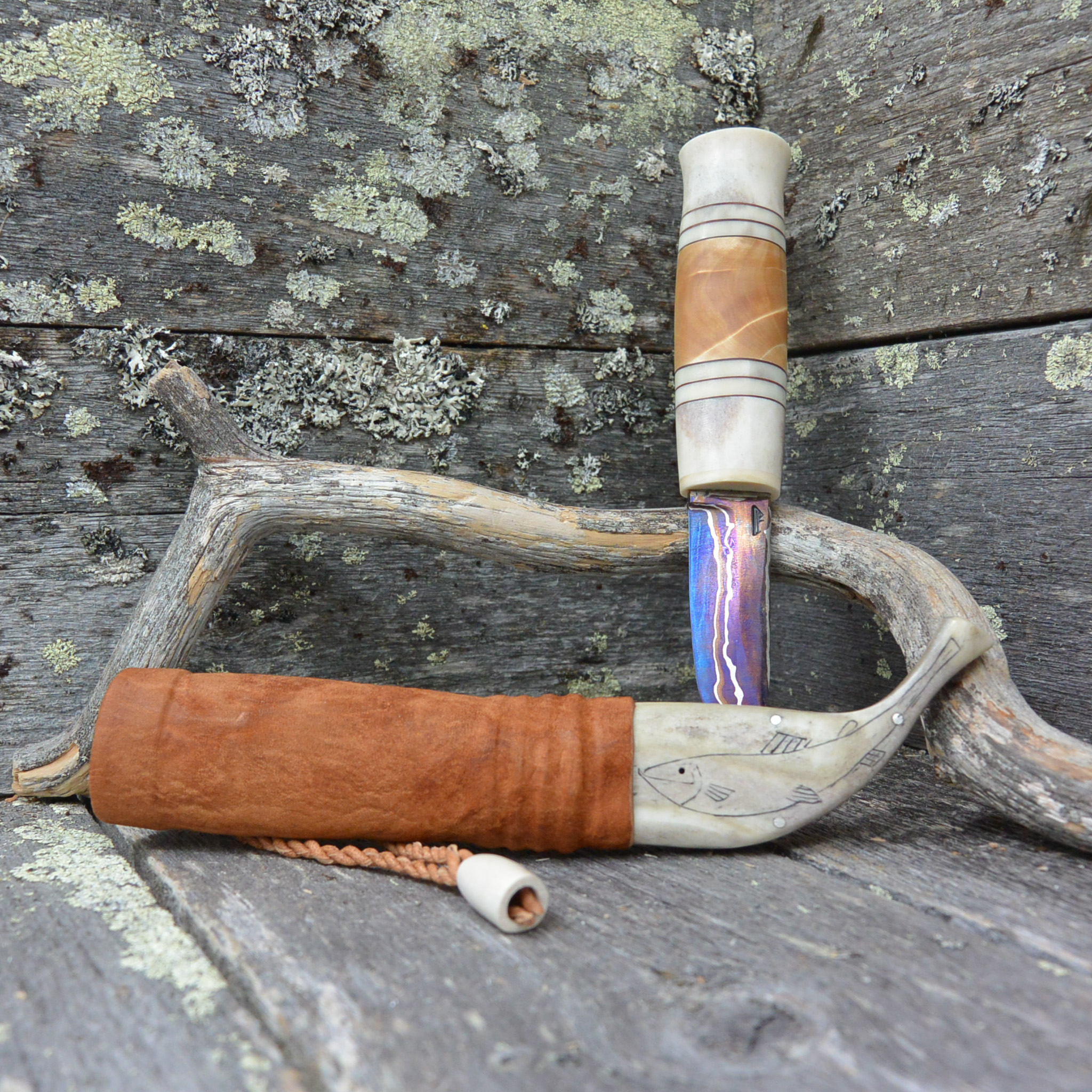 Tuppi: poronsarvea ja itseparkittua poronnahkaa