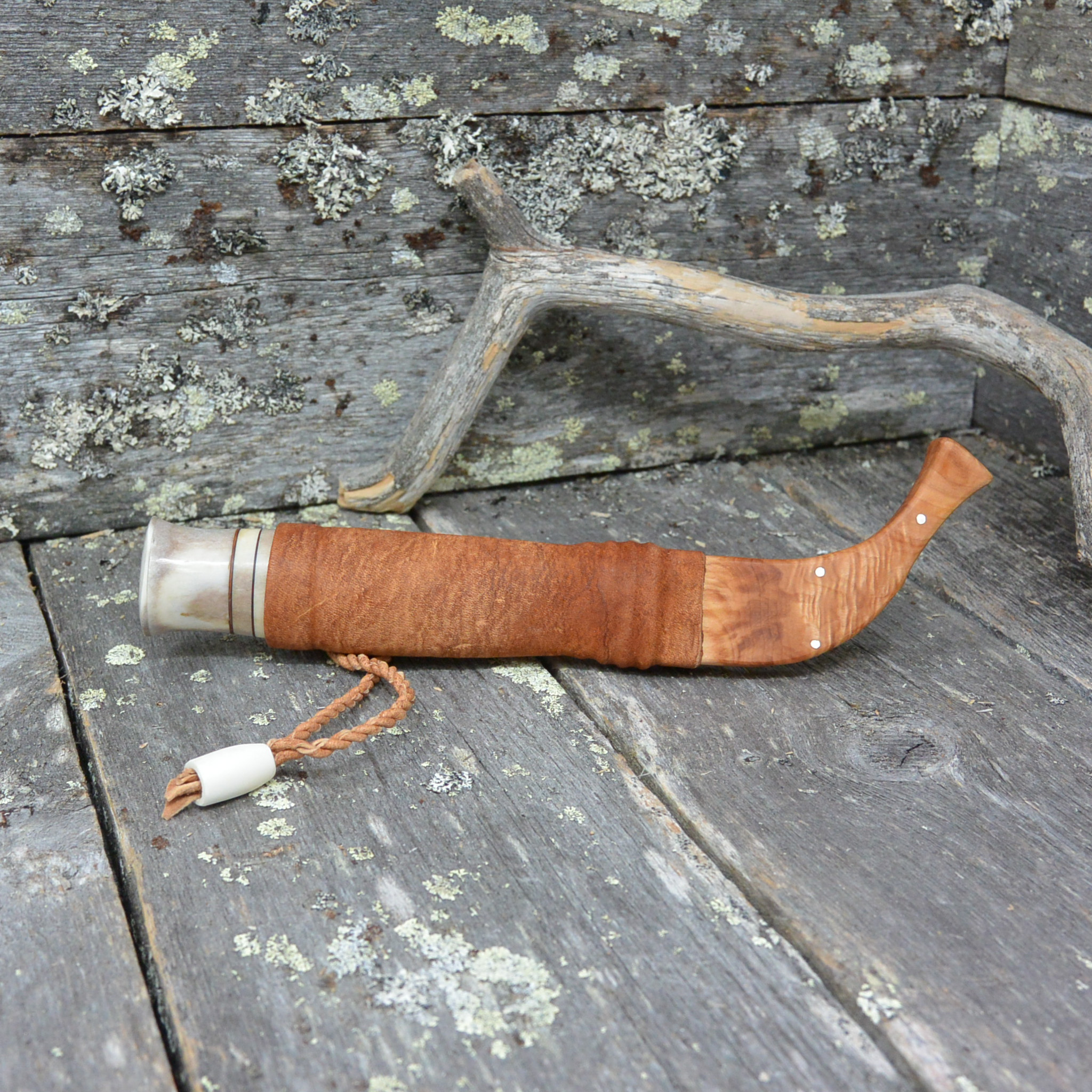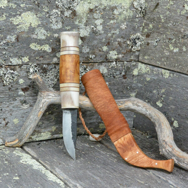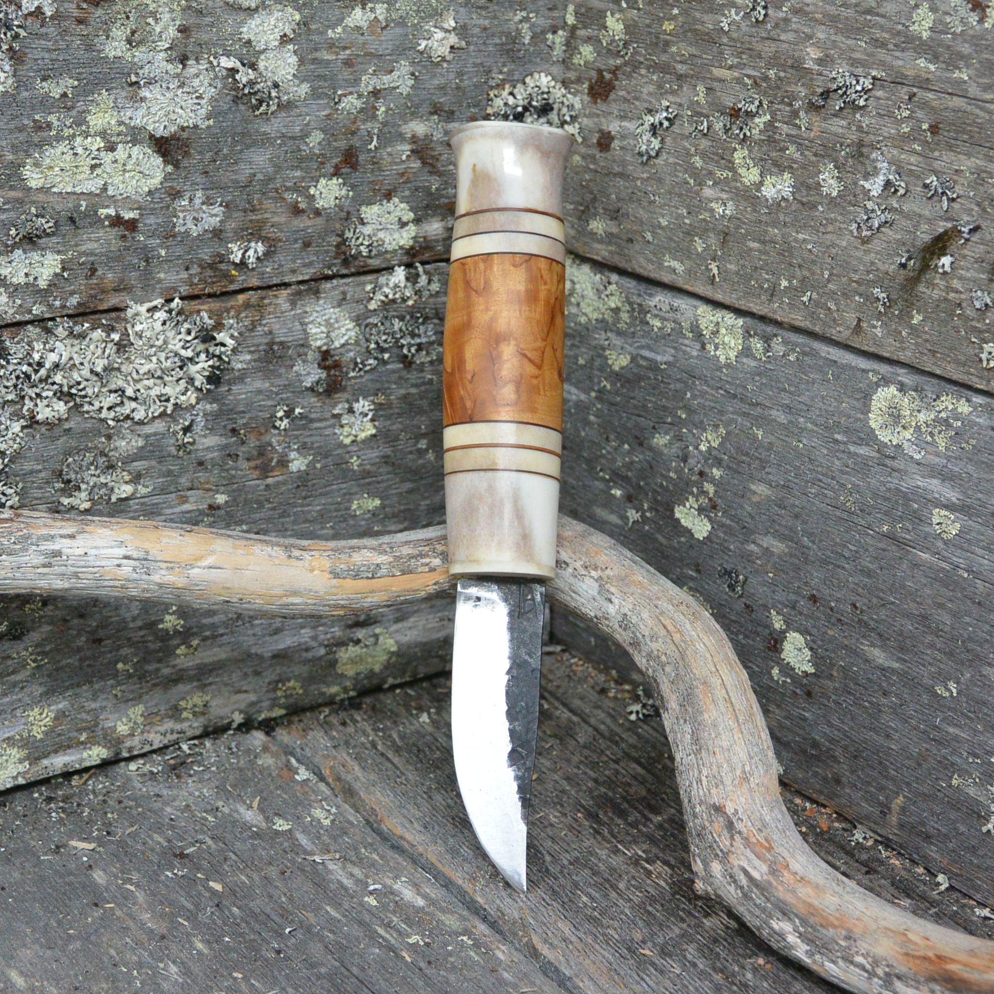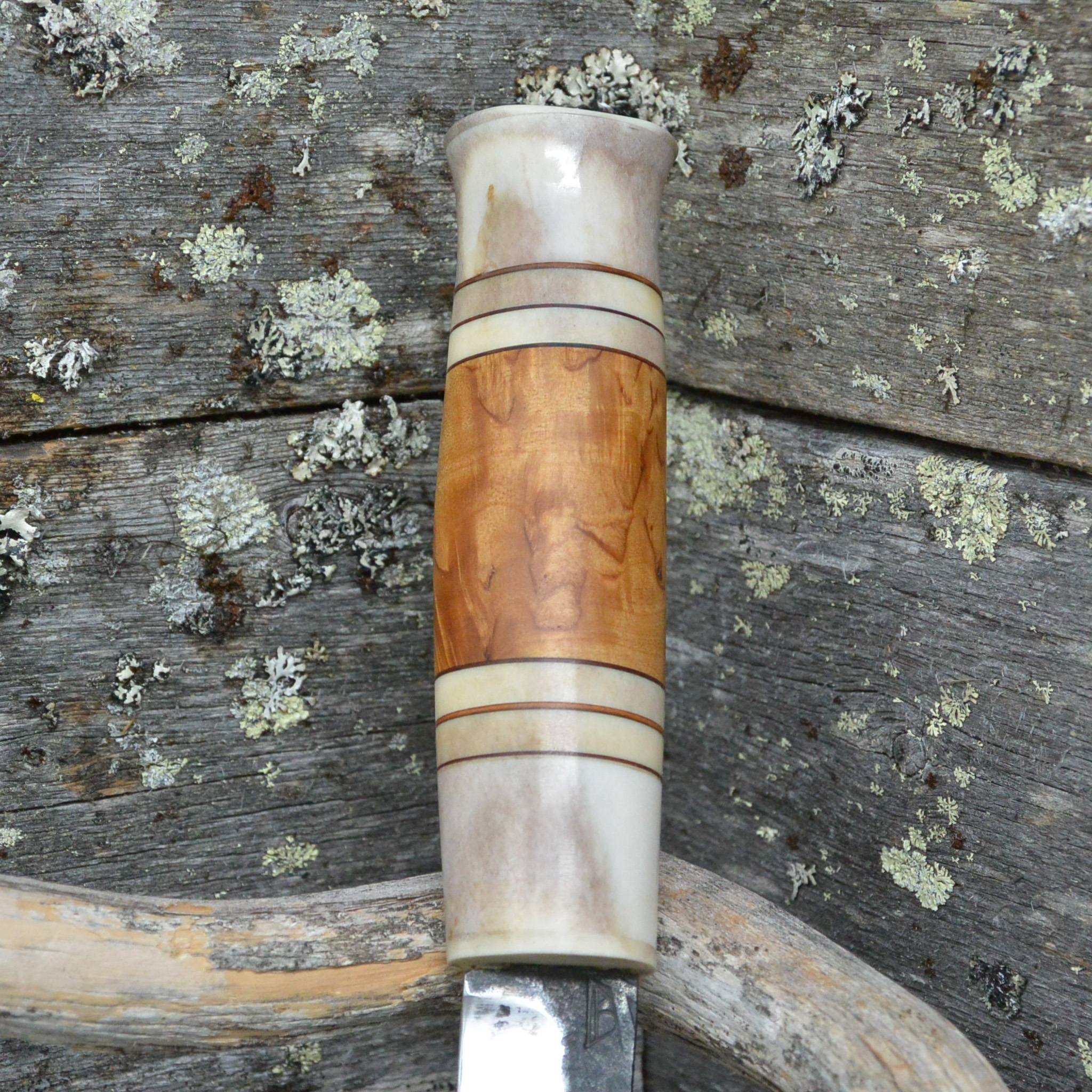 Kahva: helat ja välilevyt poronsarvea, keskellä visakoivua ja väleissä sisnaa