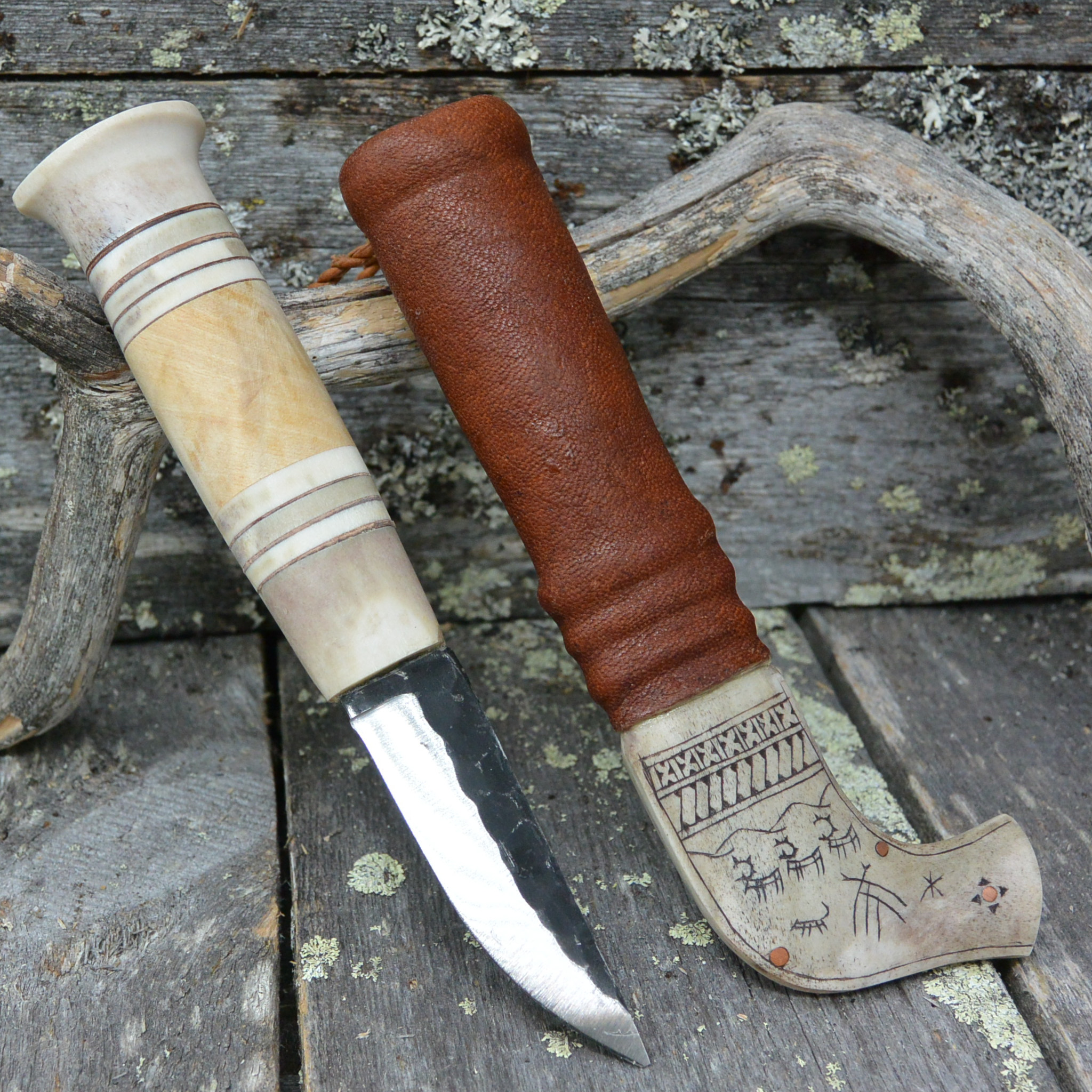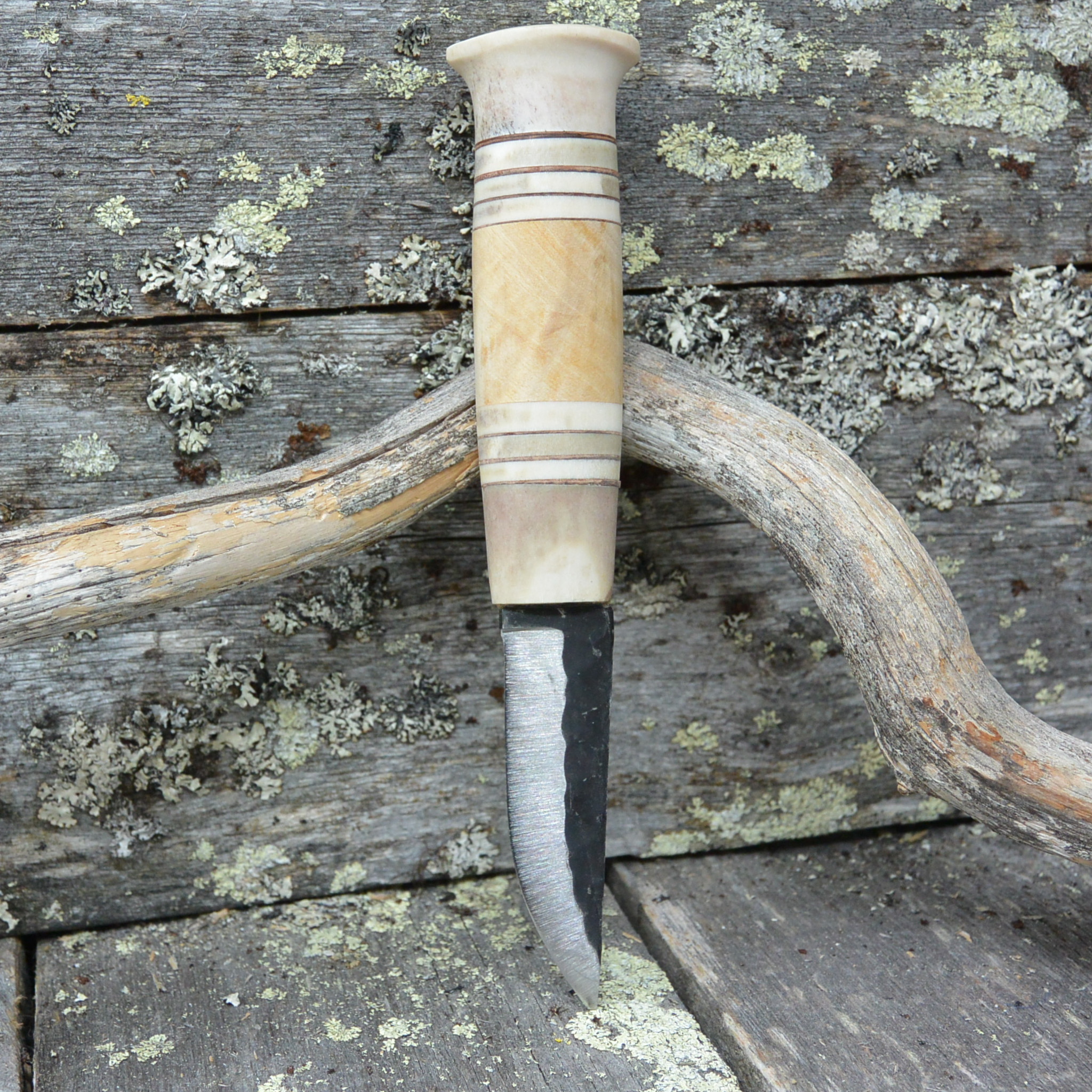 Antti-Piera Vallen käsintehty puukko porokaiverruksilla.