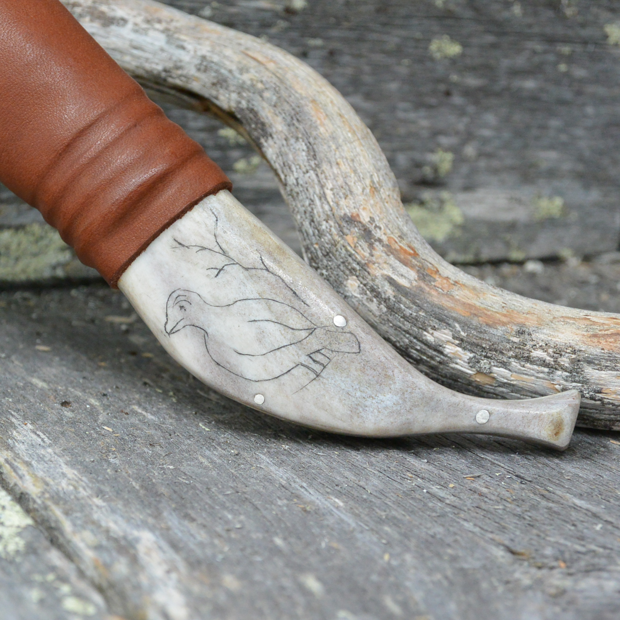 Kahva: helat poronsarvea, punapuuta, keskellä pahkaa ja väleissä sisnaa
