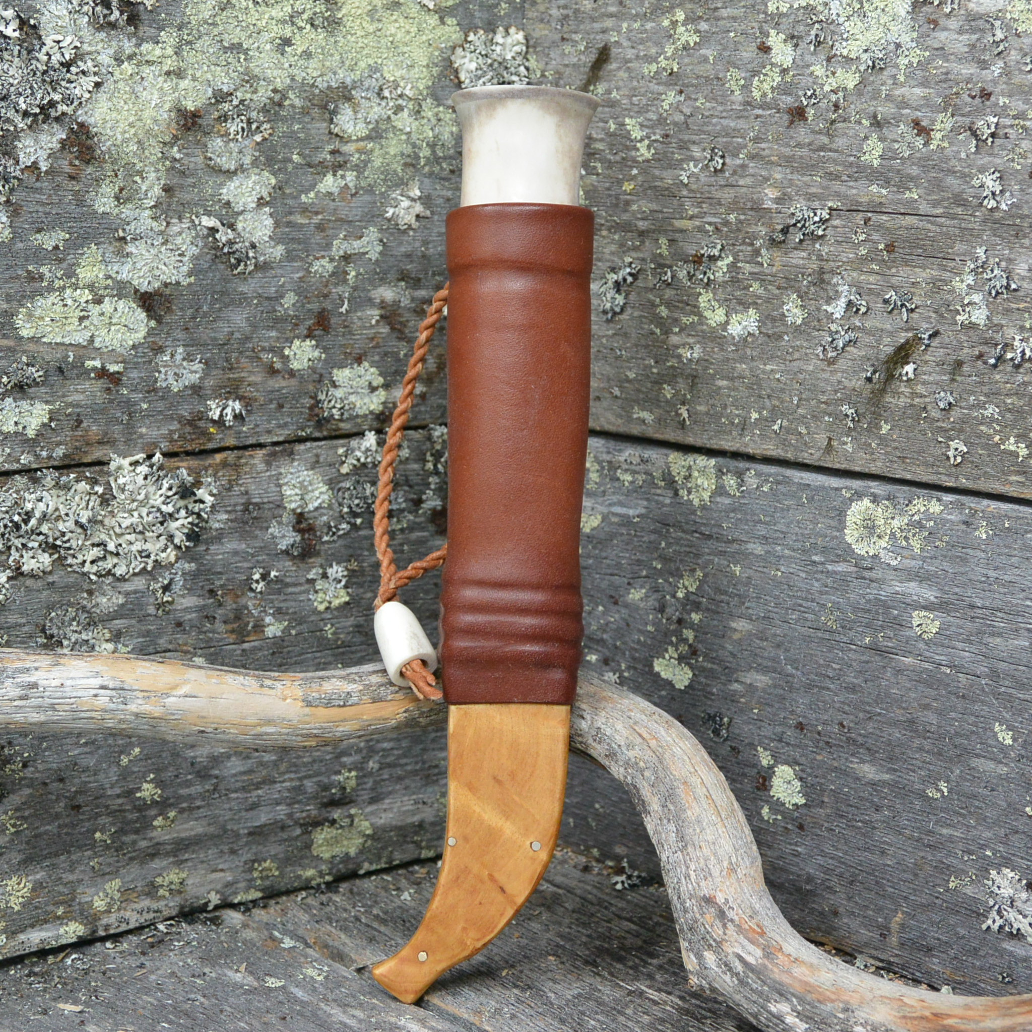 Tuppi: poronsarvi ja koivunpahka, naudannahka
