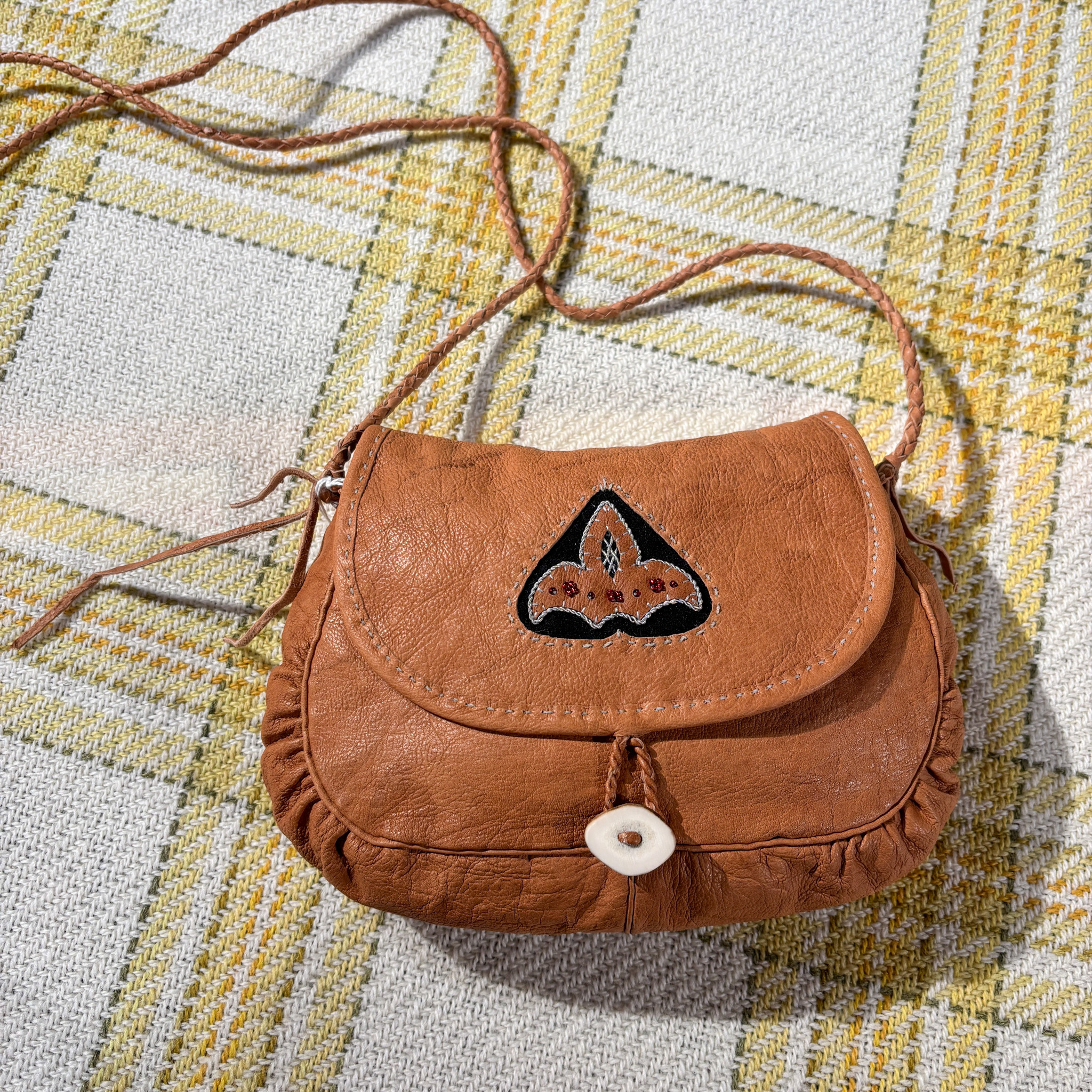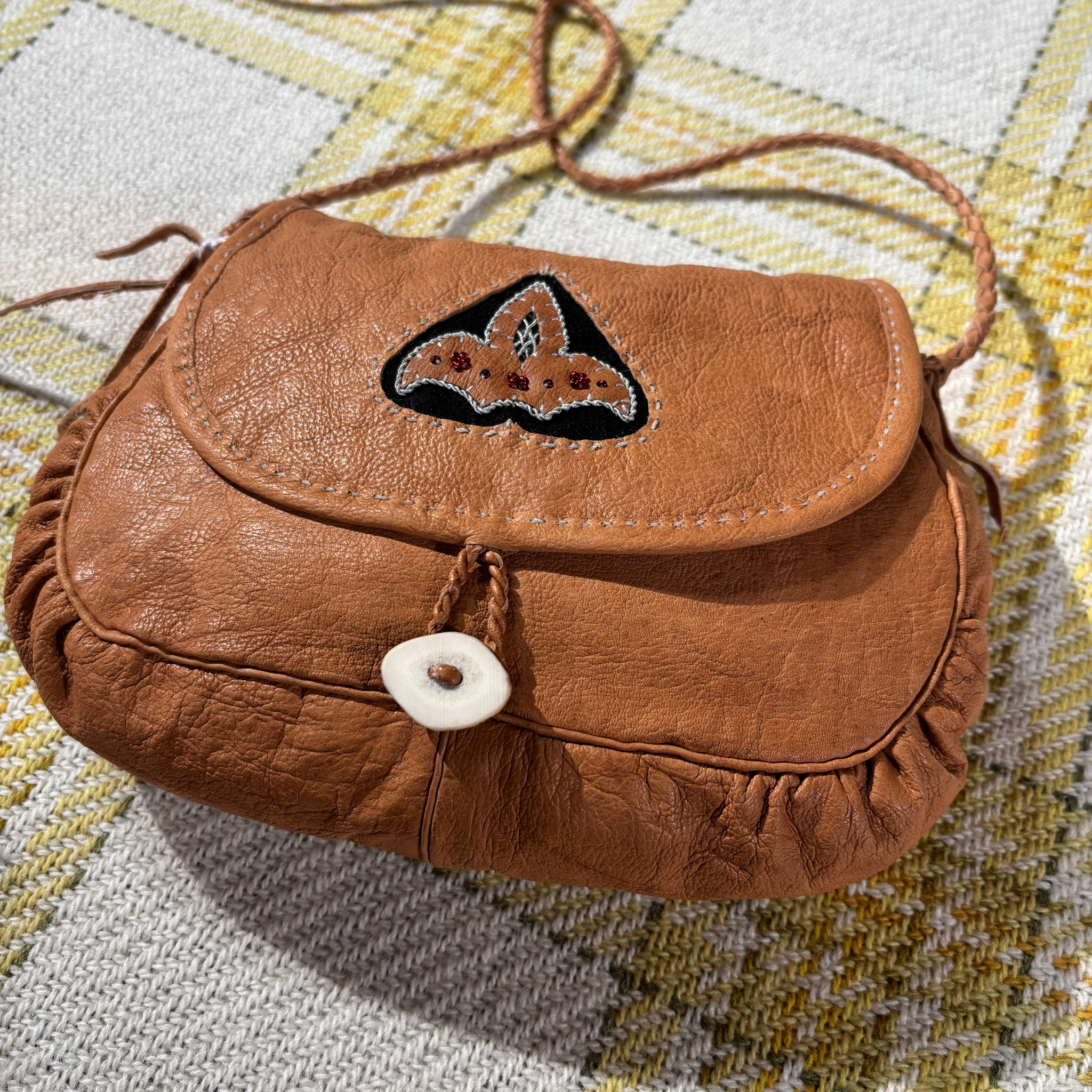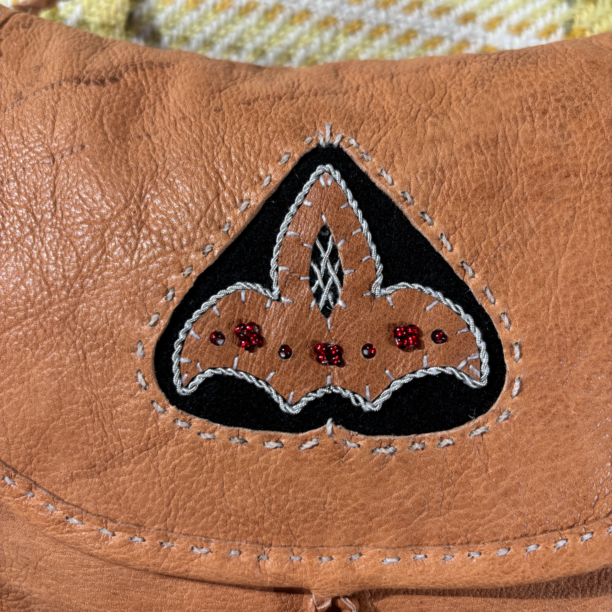 Olga Kangasniemi on inarilainen käsityöläinen. Laukut ovat käsintehty, ne ovat itse tehdystä sisnasta, myös sarvinapit ovat itsetehdyt. Laukussa uniikki tinalankakoristelu.