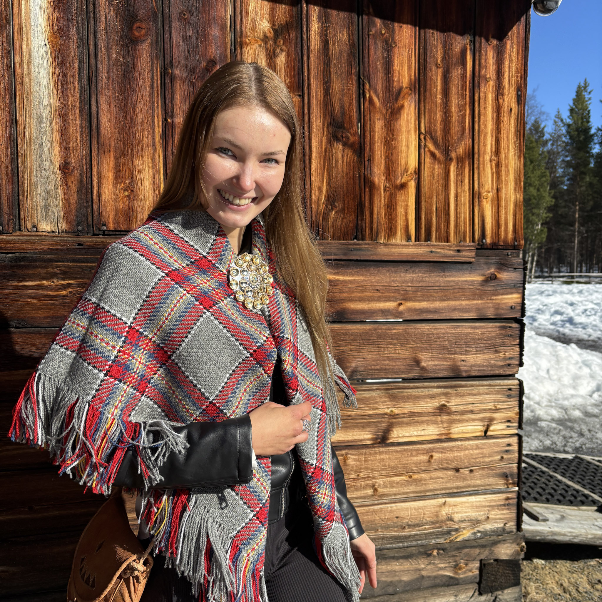 Sumujen Inari harmaa villahuivi, Inari handicrafts