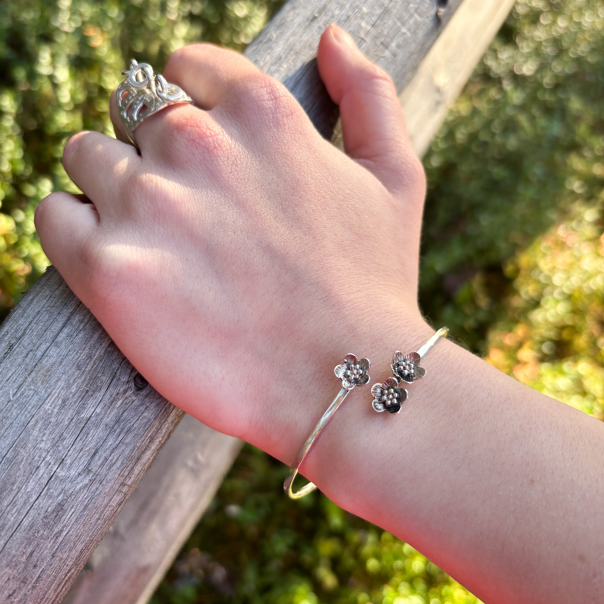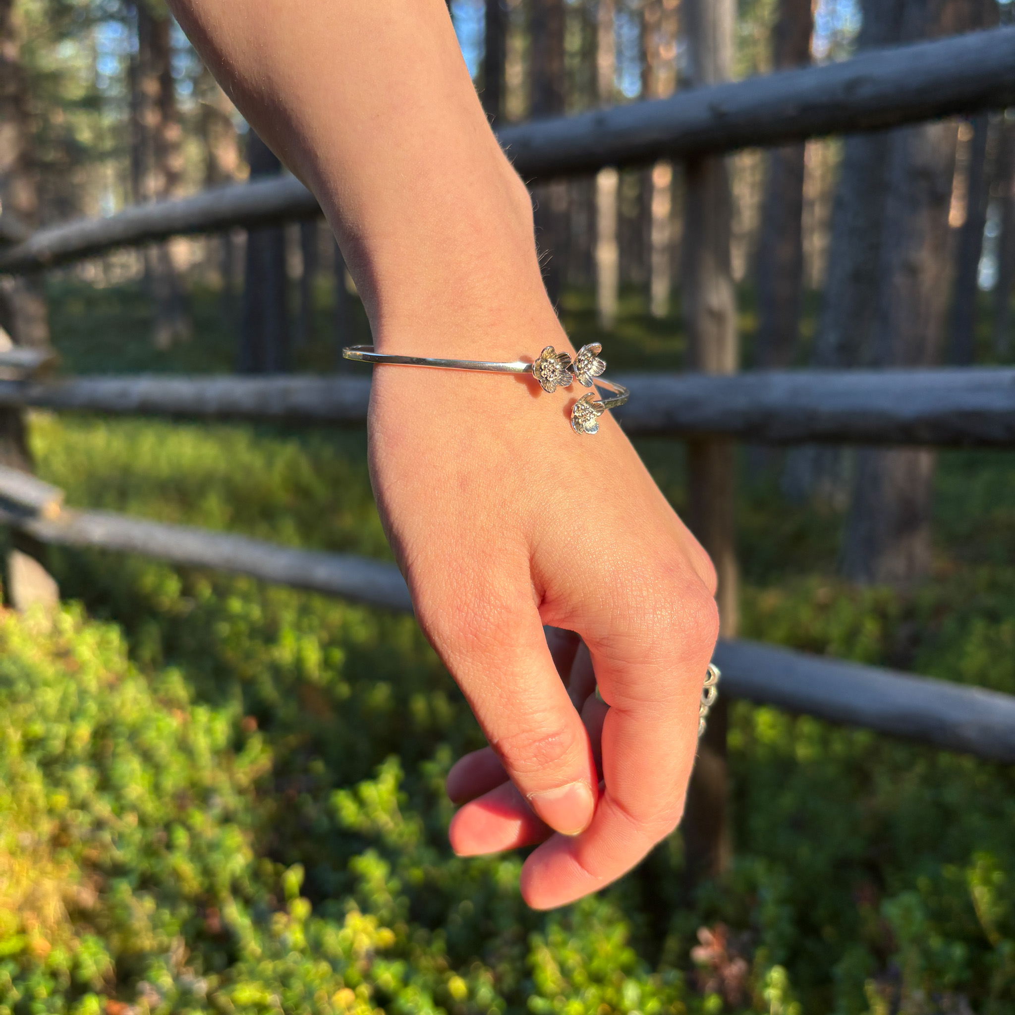 Paikallisen käsityöläisen Matilda Kumman hopeinen rannekoru.
