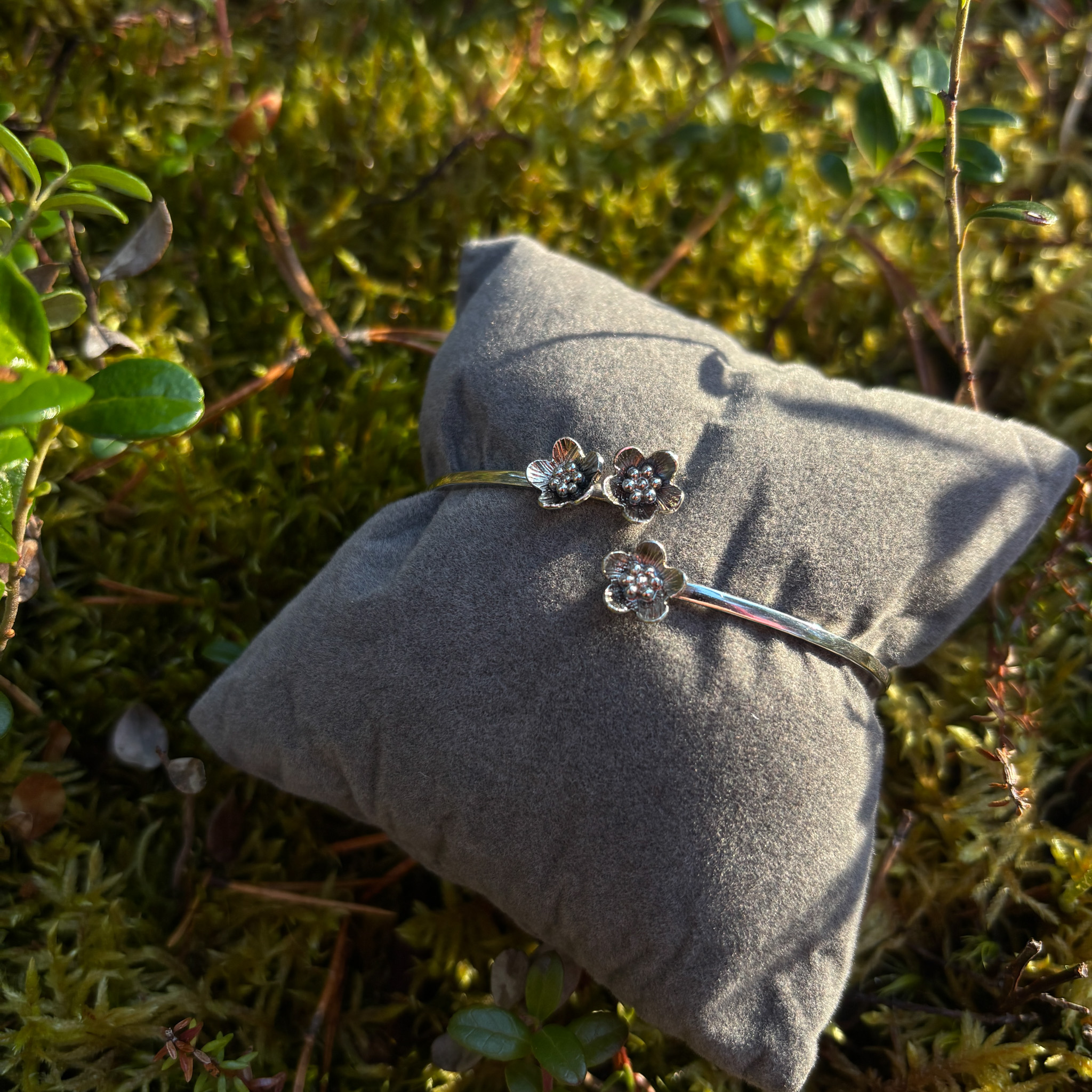 Hoito: Puhdistus saippuavedellä ja pehmeällä hammasharjalla sekä kiillotusliinalla. Korun pinta on oksidoimalla patinoitu, joten kiillotusaineita ei kannata käyttää.